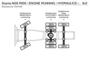 Damaged Scania NGS R500 / ENGINE RUNNING / HYDRAULICS / ONLY:275639 KM / FULL-A truck tractor